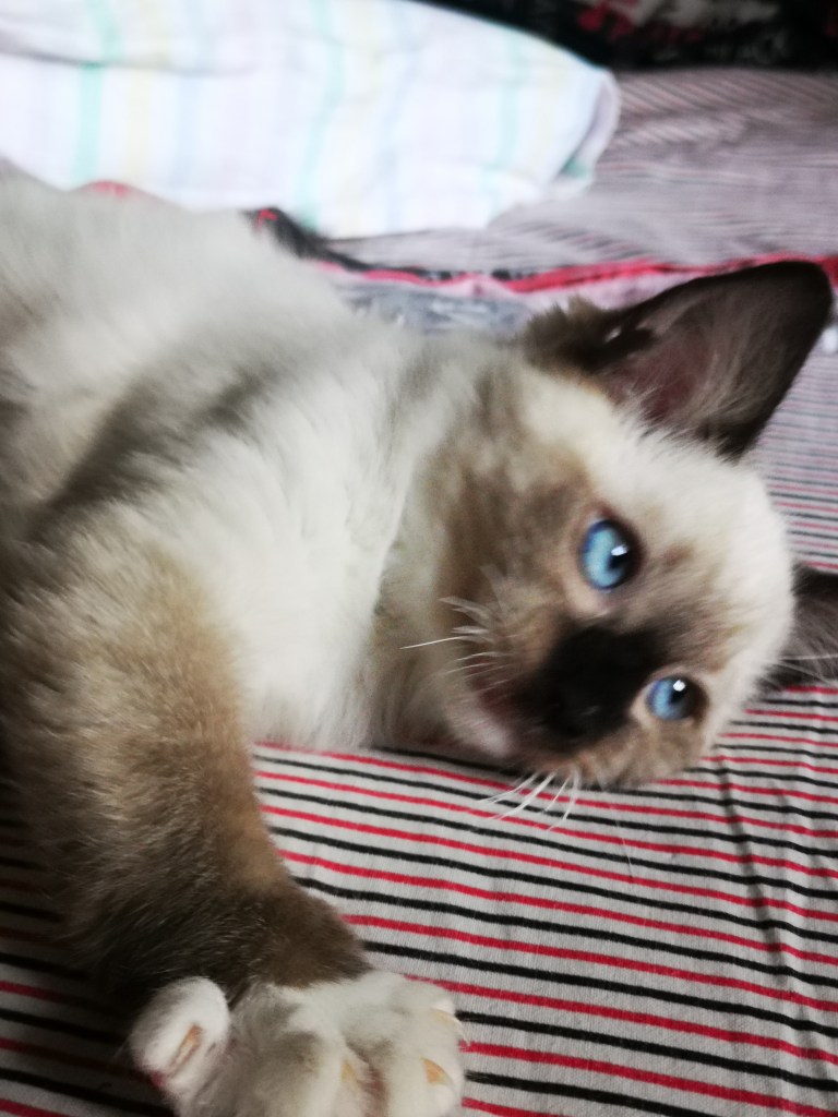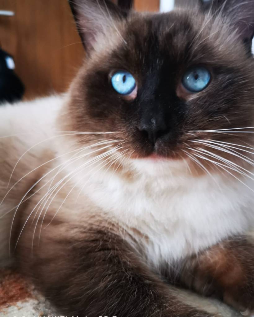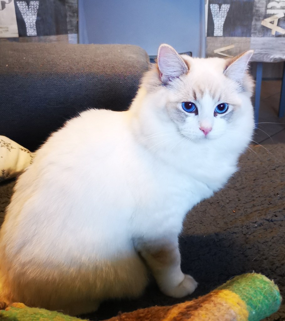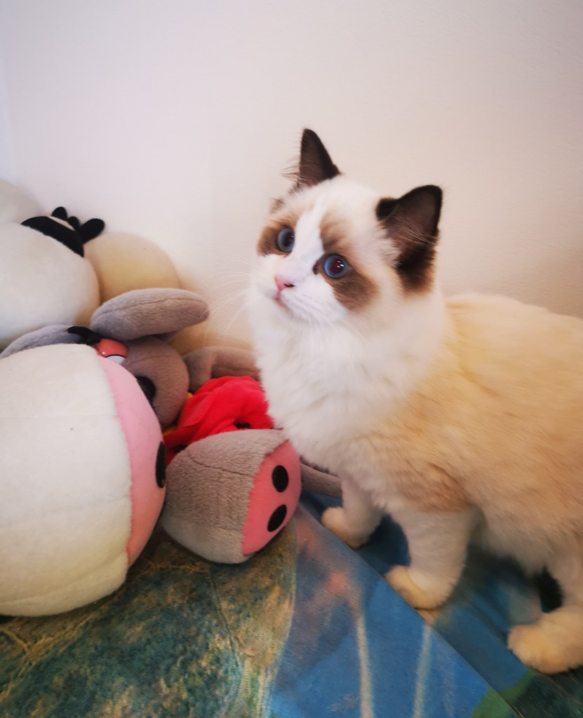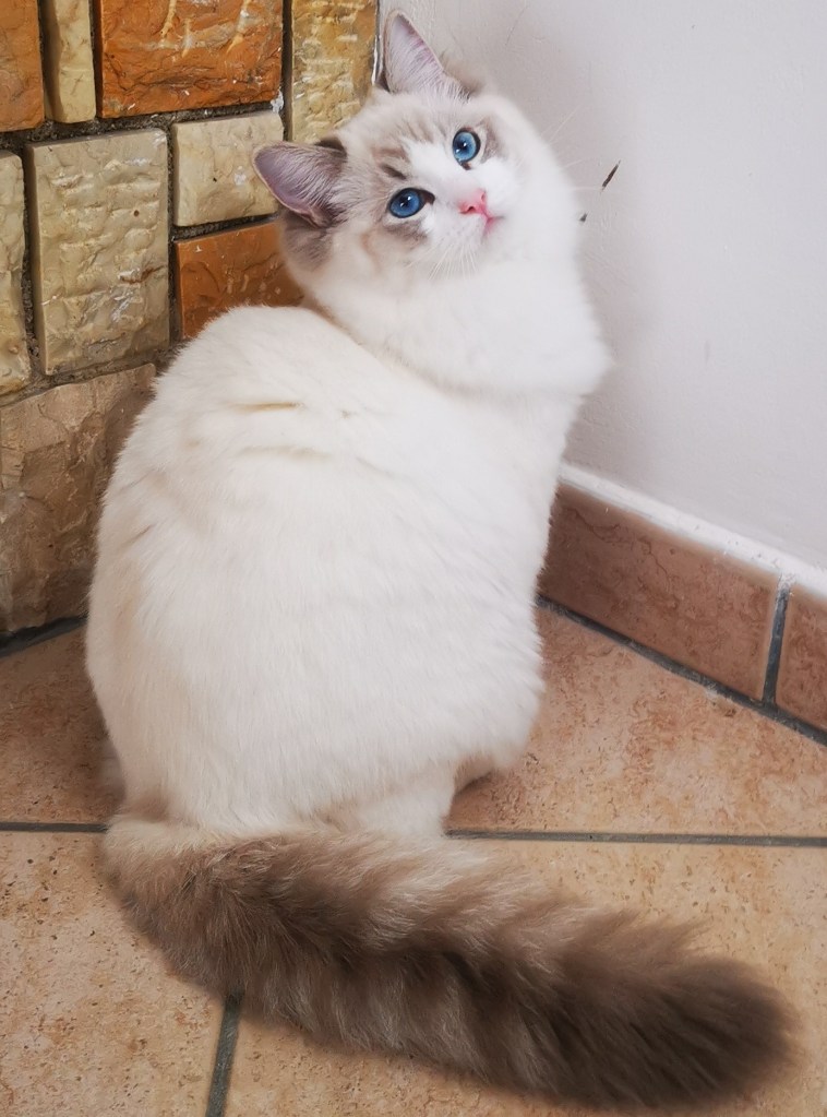 Il Ragdoll è un gatto di notevoli dimensioni, con occhi azzurri, a pelo semilungo. Una femmina adulta pesa dai 4 ai 6 kg. I maschi vanno dai 5 ai 9 kg. È un gatto grande e muscoloso con un pelo morbido e setoso che richiede una tolettatura non particolarmente impegnativa ma costante. Sviluppato dall’allevatrice americana Ann Baker, è conosciuto per il suo temperamento docile e per la sua natura affettuosa e fiduciosa. Il nome “Ragdoll” deriva dalla tendenza a rilassarsi quando viene preso in braccio proprio come una bambola di pezza.